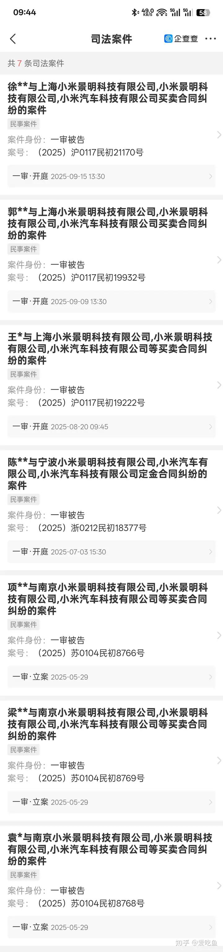有知乎网友扒出企查查上关于小米汽车买卖合同纠纷的众多案件,引发评论区一大群网友开始讨论是不是“谁先起诉谁先提车”