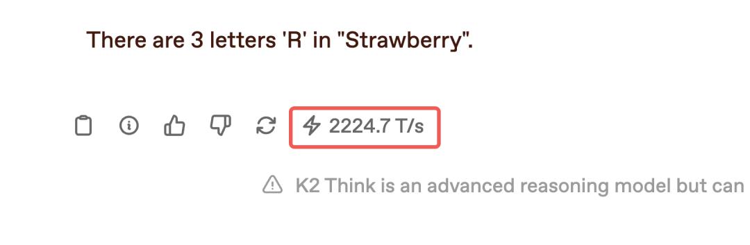 速度依旧保持在了2224.7 tokens/秒,并且给出了正确答案:3个R。