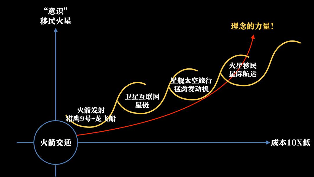 马斯克受《基地》三部曲的启发,认为人类需为文明衰亡做准备,火星是第一步。他将远大目标与务实商业结合,认为为宇宙打工,赚钱不难。以前我们会认为是由需求决定的,但当真有Y轴的理念出来的时候,是由Y轴的理念带来了第一曲线和第二曲线。
