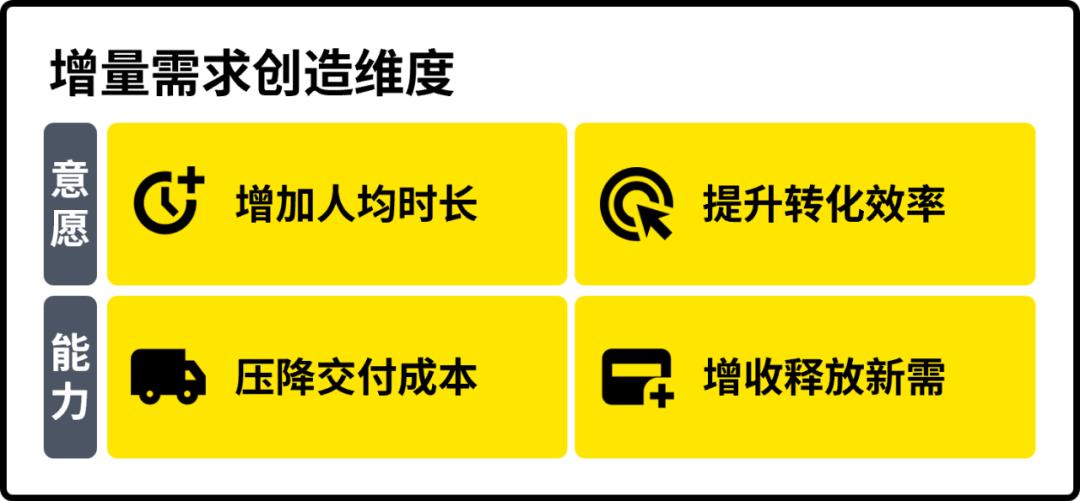 因此,意愿层面更多聚焦在增加人均时长+提升转化效率。