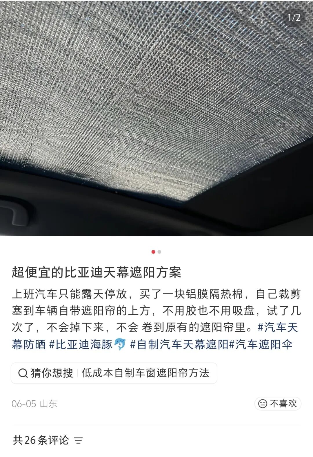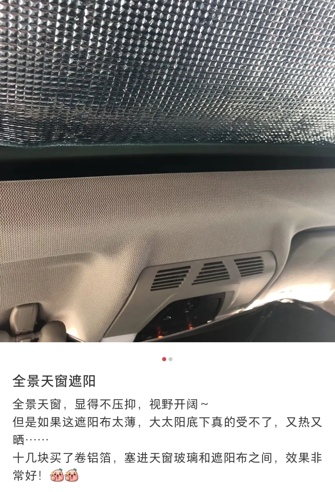 社交平台上网友们分享用铝箔棉遮挡全景天幕的方案