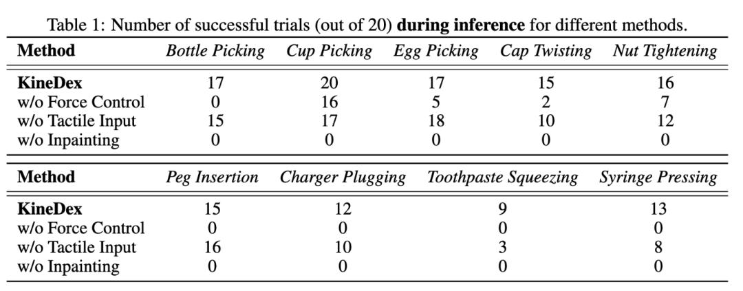 团队将KineDex与三种消融变体进行对比:
