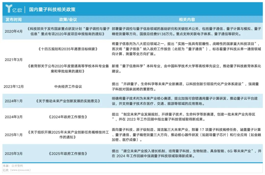 政策方面,“十四五”规划将量子信息列为八大前沿领域之一。在2024年和2025年连续两年的《政府工作报告》中提及量子计算,并将其与原子级制造和清洁氢并称为三大未来产业,这意味着量子计算成为未来产业发展重要方向,并处于战略高位。