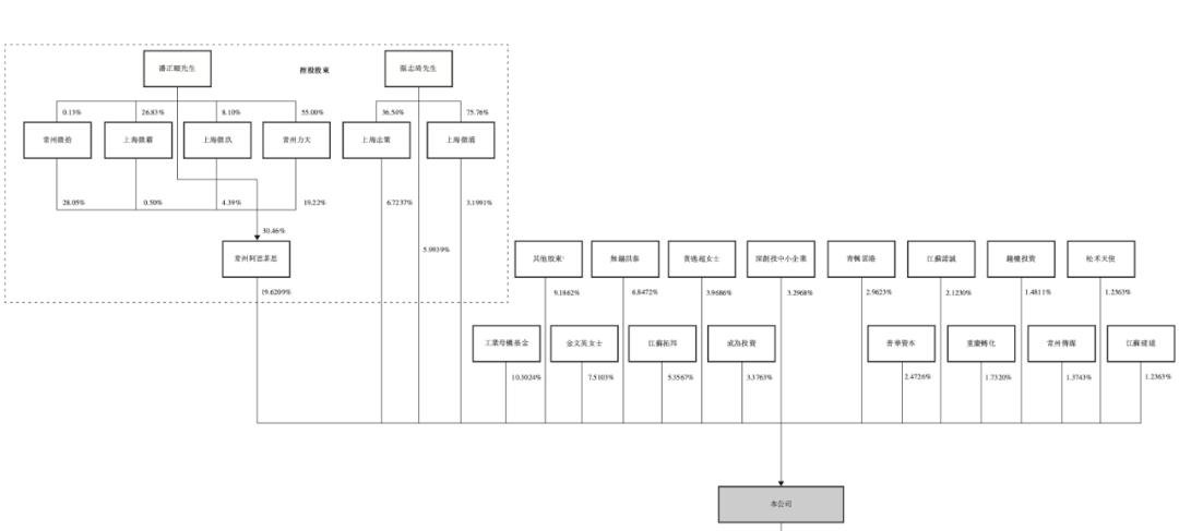 IPO前,张志琦直接持股约5.99%,加上他控制的上海志策、上海微涌合计持股约15.92%,潘正颐控制的常州阿思菲思持股约19.62%,他们为一致行动人,以张志琦的投票为准,合计持股约35.54%,为微亿智造控股股东。