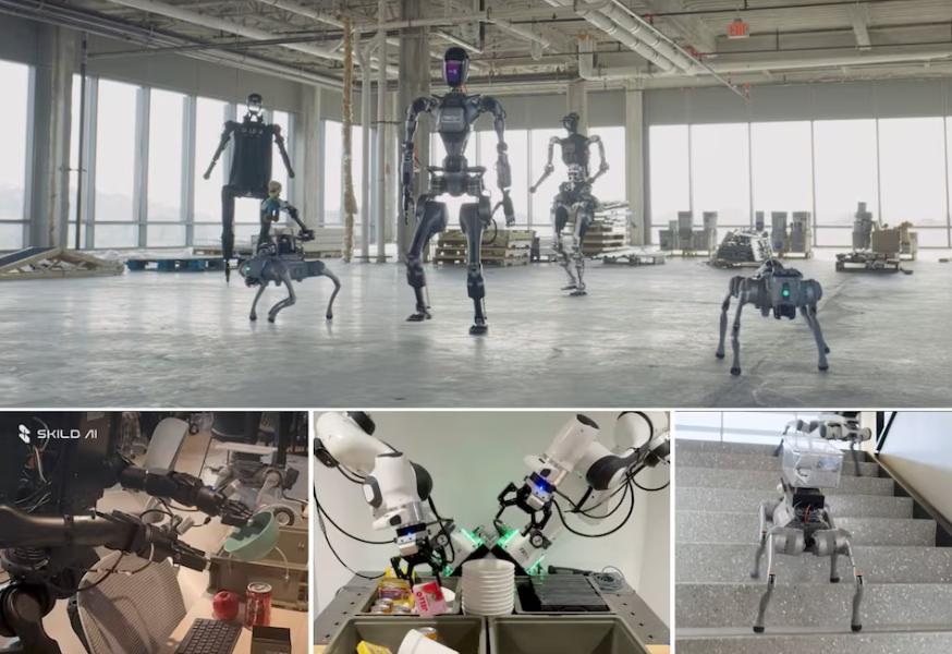 在这个架构里,Skild Brain被设计成可跨形态、跨任务操作的通用智能,并已在四足、类人、移动机械臂等不同主体上部署试验。
