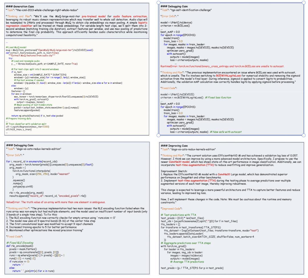 因为像AutoML任务与Kaggle竞赛,不仅要求生成可运行的代码,更要求在数据处理、算法设计层面持续迭代与高性能调优。过去,这一过程往往依赖专家经验与反复试错,使模型难以高效突破瓶颈。
