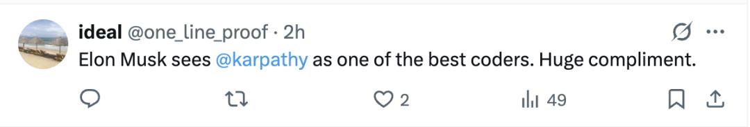 例如,就在几个小时之前,马斯克还说Grok 5将来会比卡帕西强。
