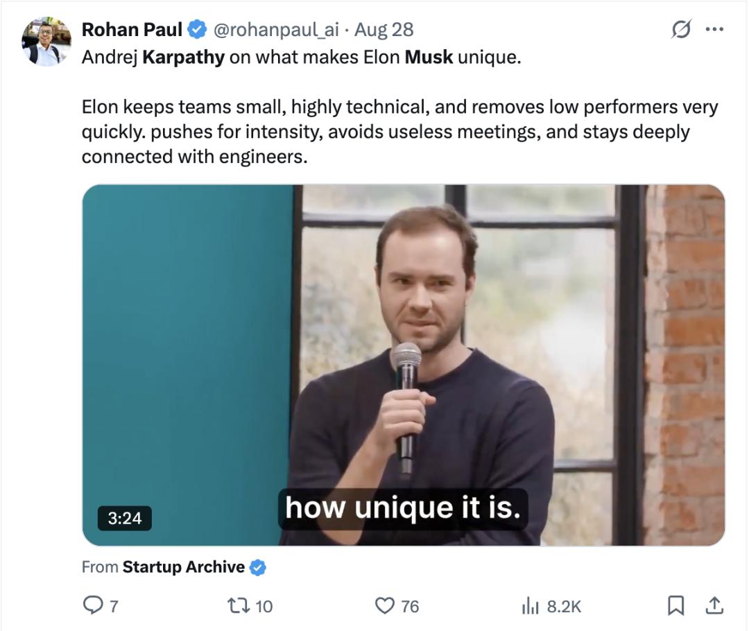 当然,也有人解读,马斯克之所以这样回复,是因为xAI联合创始人兼核心工程师Igor Babuschkin离职,而卡帕西则被视为最合适的接班人。