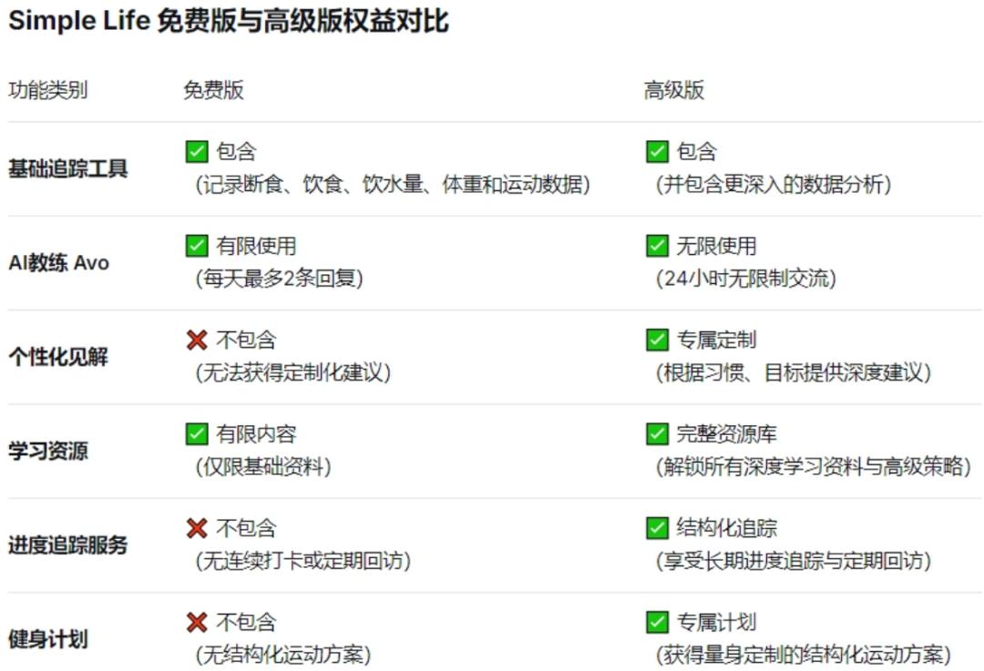 免费用户每天只能与 AI 健康教练 Avo 对话两次,若想解锁无限陪伴等更多高级功能,则需升级为 Premium 会员。凭借这种订阅制服务模式,Simple Life 在 2024 年的收入已突破 1 亿美元,同比增长64%。