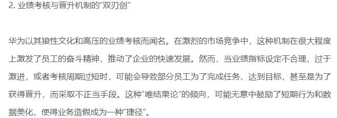 据《蓝血研究》等报道,华为特有的狼性文化和严格的业绩考核制度,在此次事件中扮演了双重角色。一方面,这种机制激发了员工的奋斗精神,推动了业务发展;另一方面,当业绩指标设定过于激进或不切实际时,可能促使部分团队采取短期行为。考核导向与激励机制的设计,直接影响着员工的行为选择。
