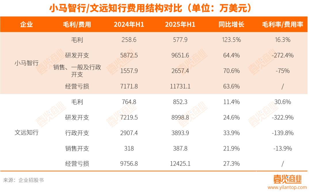 二者都维持高速扩张,但也都在持续亏损。小马智行净亏损9064 万美元,同比扩大 75.1%;文远知行亏损 1.1 亿美元,同比收窄 8.9%。
