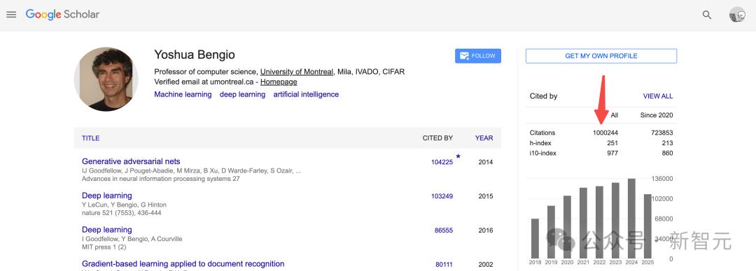 Yoshua Bengio成为谷歌学术上首个论文引用量超过100万的人!