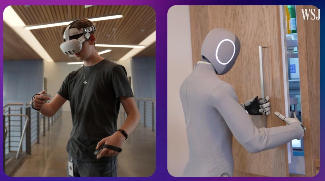 Neo 的两个眼镜会变成远程操作员的摄像头,远程操作员给 Neo 下指令如何操作