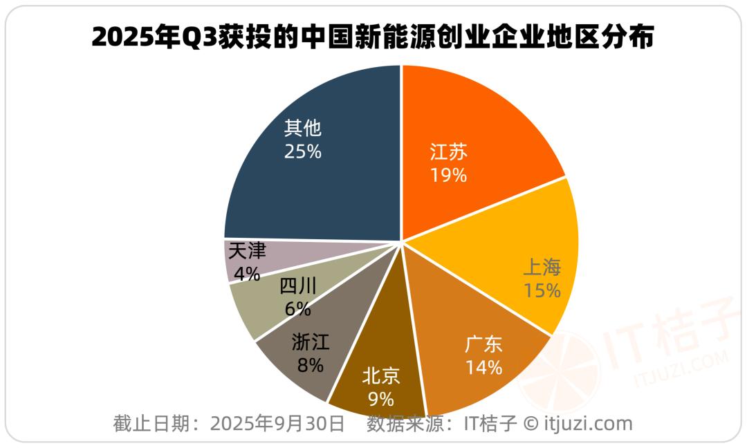 2025年三季度新能源赛道融资活动的地域集中度较高,形成以江苏省为核心、多区域协同发展的格局。