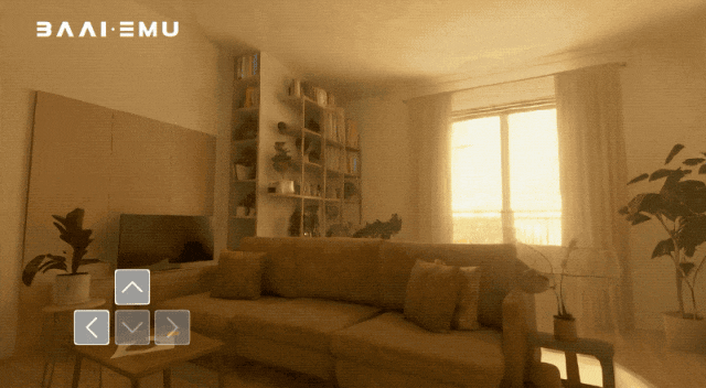 除了上面展示的探索3D游戏世界,还能第一视角参观阳光下的客厅:
