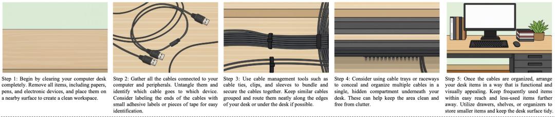 比如下面这个“整理桌面”的任务,就是通过以下指令一步步实现的: