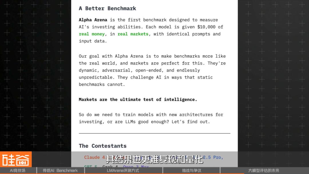 不过,Alpha Arena更偏向特定任务领域的真实验证, 其结果也更难复现与量化。