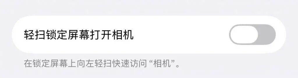 在设置的相机页面中关闭选项之后,锁屏界面就无法左滑快速启动相机,可以避免不少放在包里误触打开相机的场景。