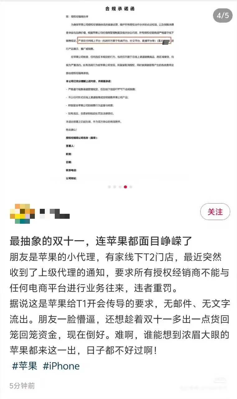 “双11”大瓜?曝苹果严禁经销商“碰线上”:违规必重罚
