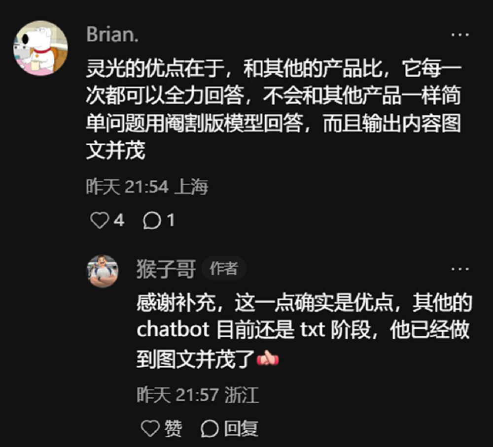 有用户认为,灵光选择了一条差异化的发展路径,其回答的可读性和结构化能力是用户体验的重要部分,并不是所有产品都需要变成极致化的生产力工具。