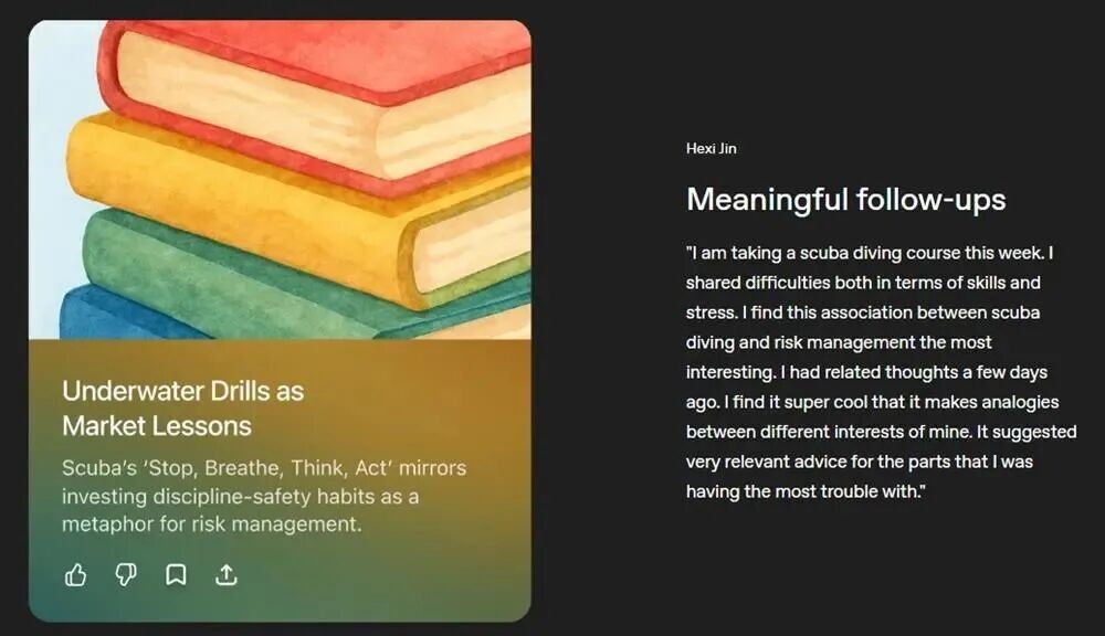 OpenAI也在近期尝试将多模态应用于信息呈现。其9月底推出的Pulse功能,尝试让AI主动给用户提供一份量身定制的资讯卡片,就像是人工编辑精心挑选,制作的一样,以结构化、直观的方式将文字、图表、图片等信息结合在一起。