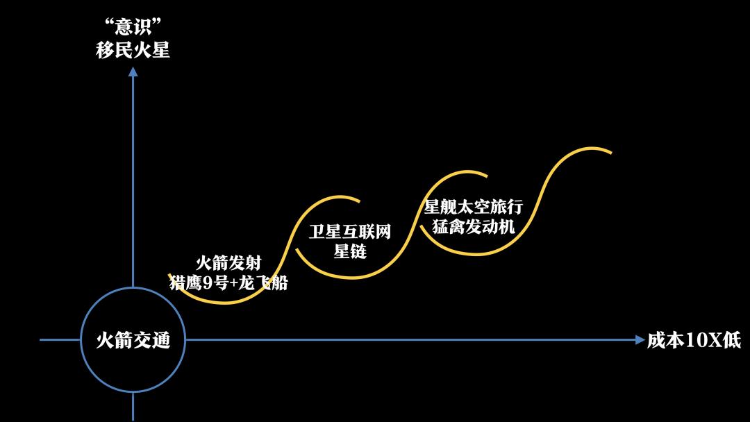 马斯克受《基地》三部曲的启发,认为人类需为文明衰亡做准备,火星是第一步。他将远大目标与务实商业结合,认为为宇宙打工,赚钱不难。以前我们会认为是由需求决定的,但当真有Y轴的理念出来的时候,是由Y轴的理念带来了第一曲线和第二曲线。