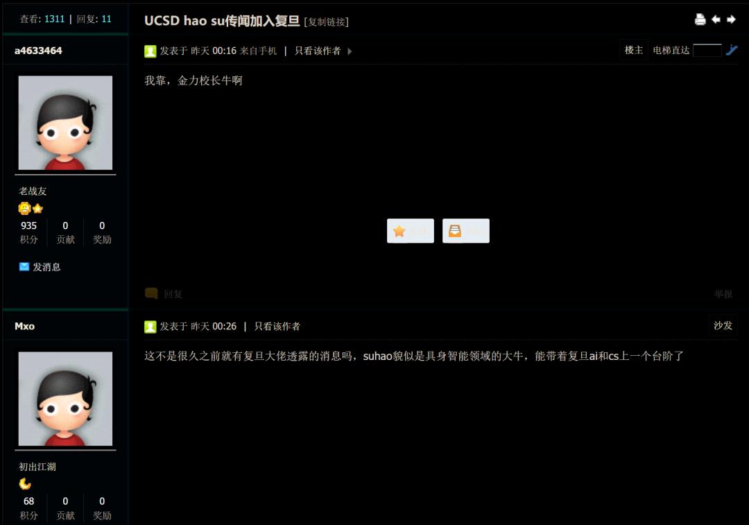 目前,公开渠道并没有确凿证据显示苏昊已正式加入复旦。