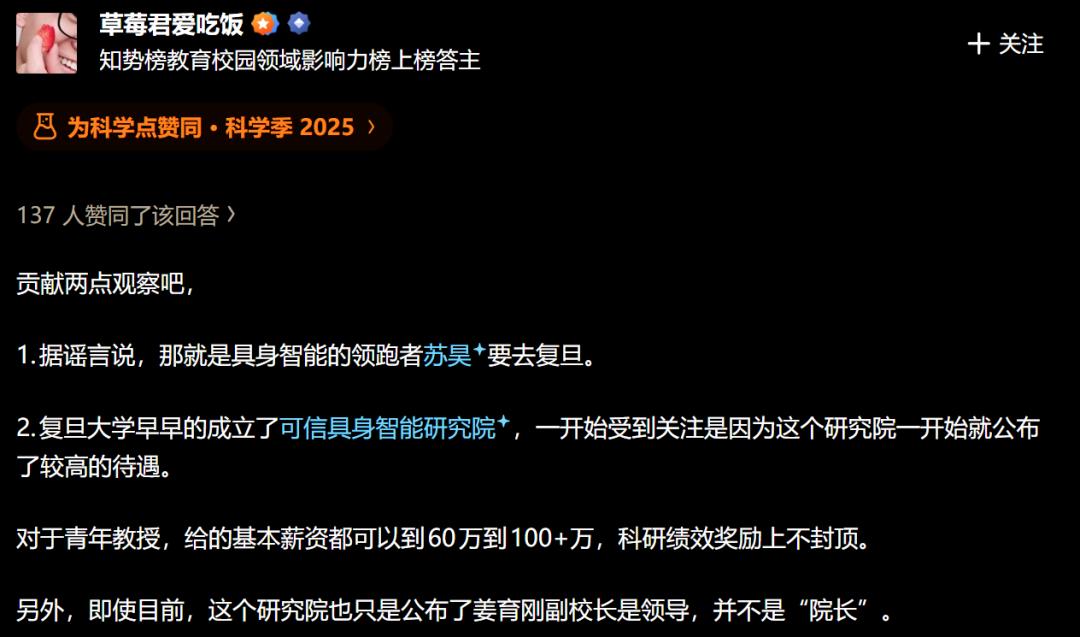 如果复旦将苏昊及其团队纳入,在这个领域形成「定海神针」级别核心力量,并与已有计算机视觉、自动化、材料、工程背景交叉融合,能快速构建国内在具身智能方向的核心竞争力。