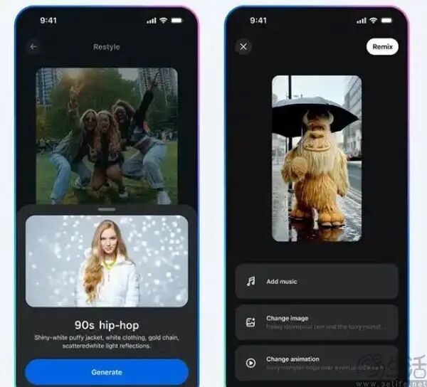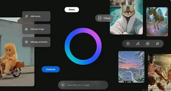 事实上,Vibes类似于AI版本的抖音、快手,为用户提供了动画、特效短片、虚拟场景等AI生成的视频内容,并且还支持用户对Vibes信息流里刷到的视频进行 “再创作”(remix),然后再分享到Instagram、Facebook Stories。