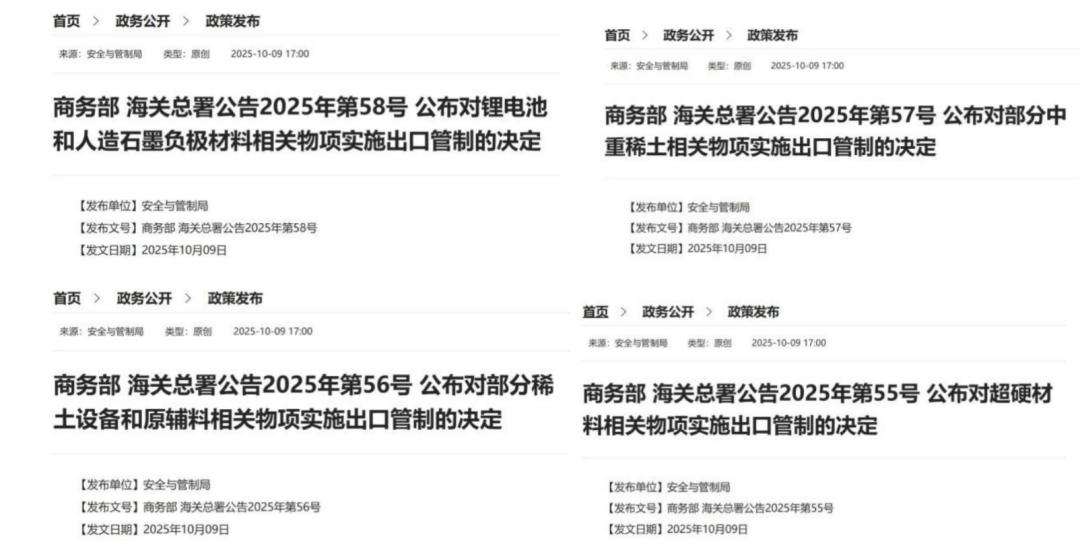 其实早在今年4月,已有7类中重稀土相关物项实施出口管制措施,而10月9日,针对稀土的出口管制措施进一步升级。