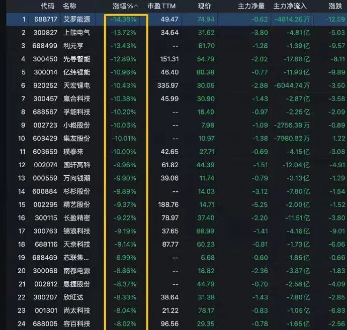消息一出,A股的锂电池板块应声大跌,指数单日下滑了近7%。超400只与锂电池相关的概念股中,近9成下跌。